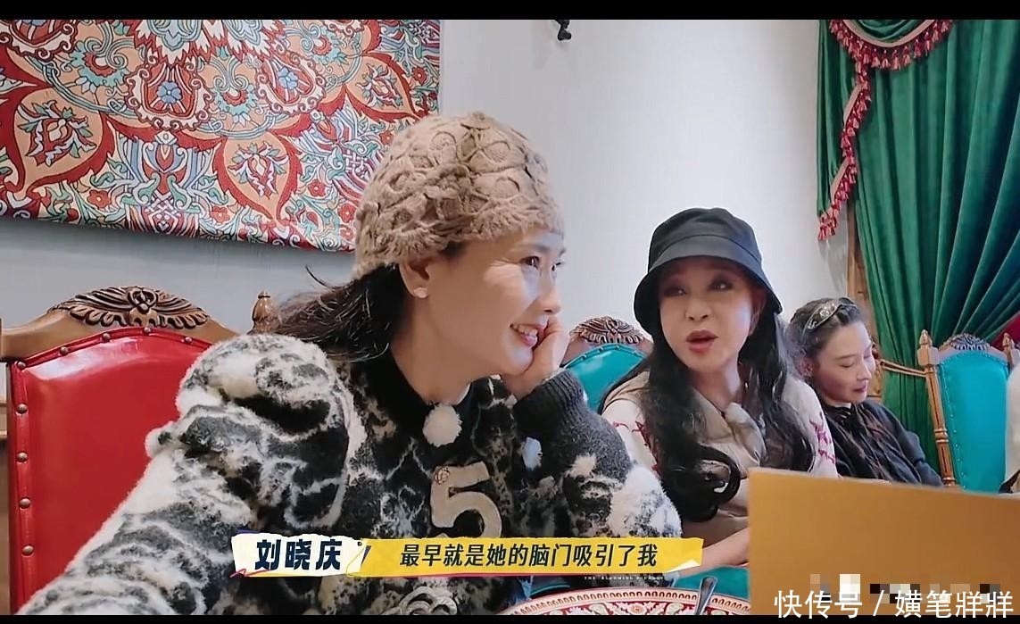 当她做出搞怪表情时,刘晓庆笑得前仰后合,连连称赞她是团队里的“开心果”。
